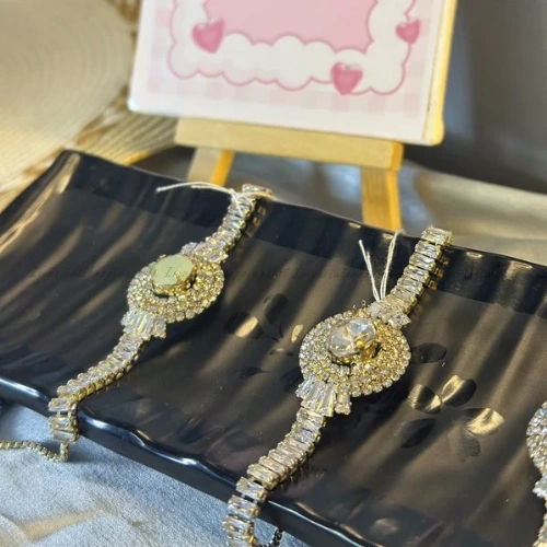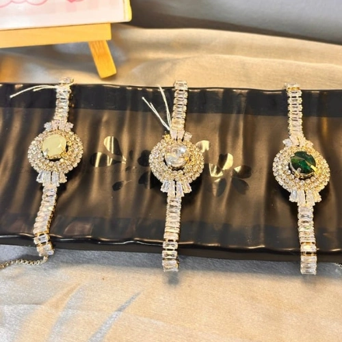 A stunning adjustable bracelet featuring a large central gemstone (available in Emerald, Clear, or Champagne) surrounded by a brilliant halo of baguette and round crystals.