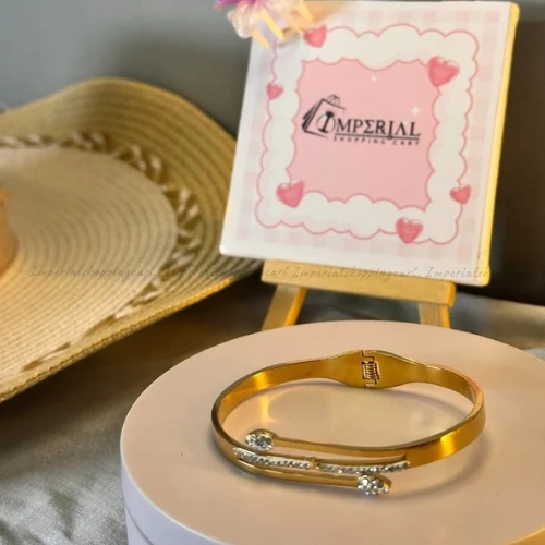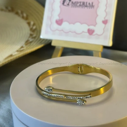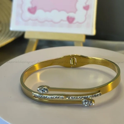 A sophisticated bypass-style bangle featuring rows of sparkling pave crystals and teardrop accents. Includes a secure spring-loaded hinge for comfort.