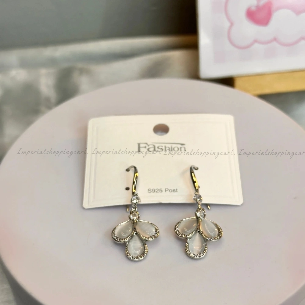 Designed for the dreamer, these drop earrings feature a trio of pear-shaped moonstone-style gems cradled in a pavé-set crystal border. Hanging from a dainty "S925 Post" hook, they offer fluid movement and a soft, romantic glow.