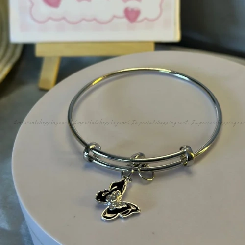 Capture the beauty of nature with this striking black and silver butterfly charm. Featuring intricate wing details and a crystal-encrusted body, this bangle is designed for those who appreciate bold, artistic jewelry.