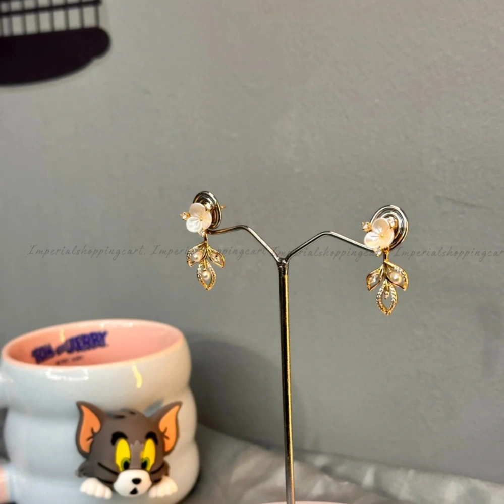 Capture the essence of spring with these intricate drop earrings. Featuring a delicate white enamel flower at the stud and a dangling filigree leaf motif, these earrings provide a vintage-inspired look that is both light and enchanting