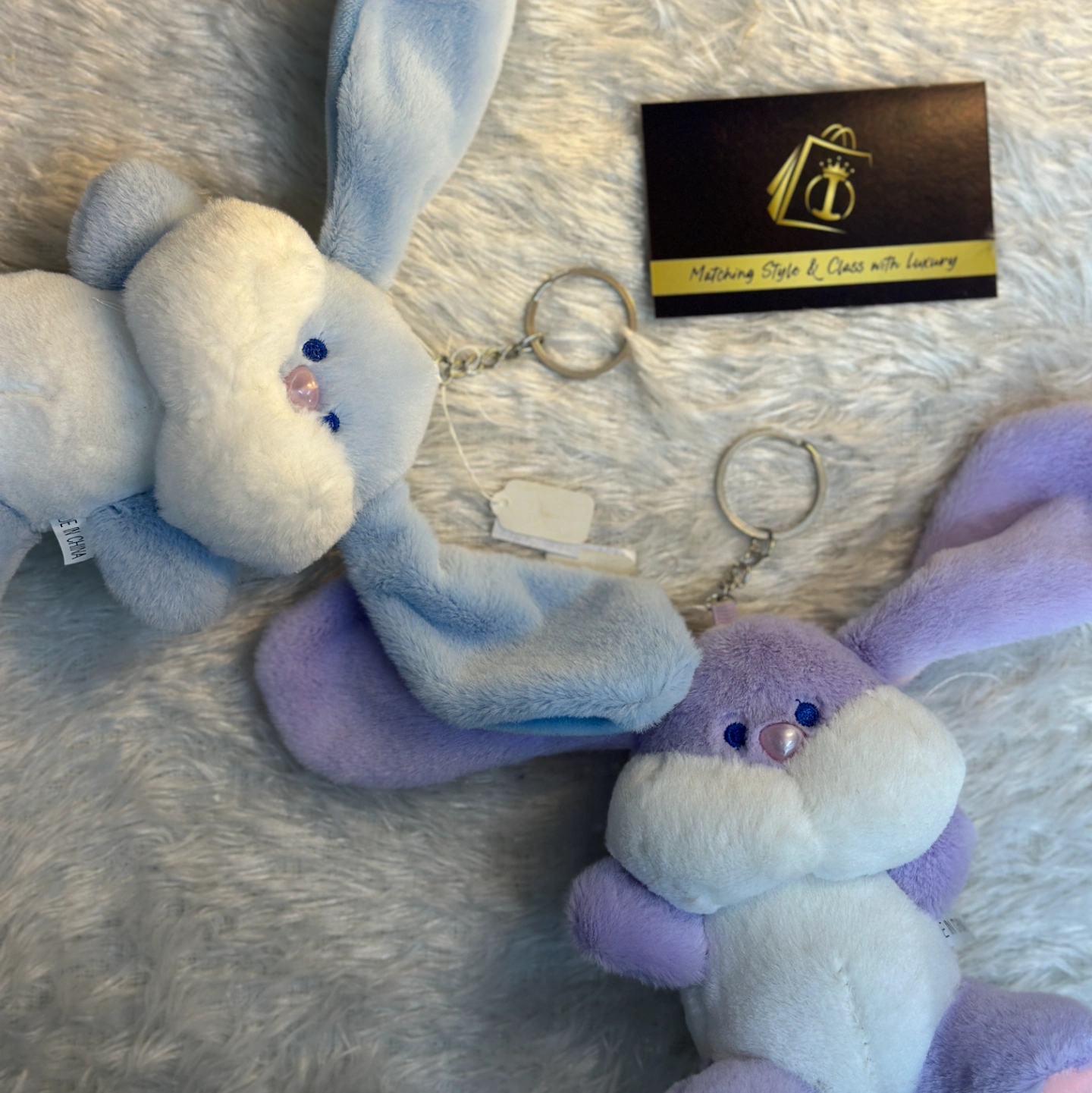 With oversized ears and tiny pink noses, these round, fluffy bunnies are the ultimate "kawaii" accessory for any bag.