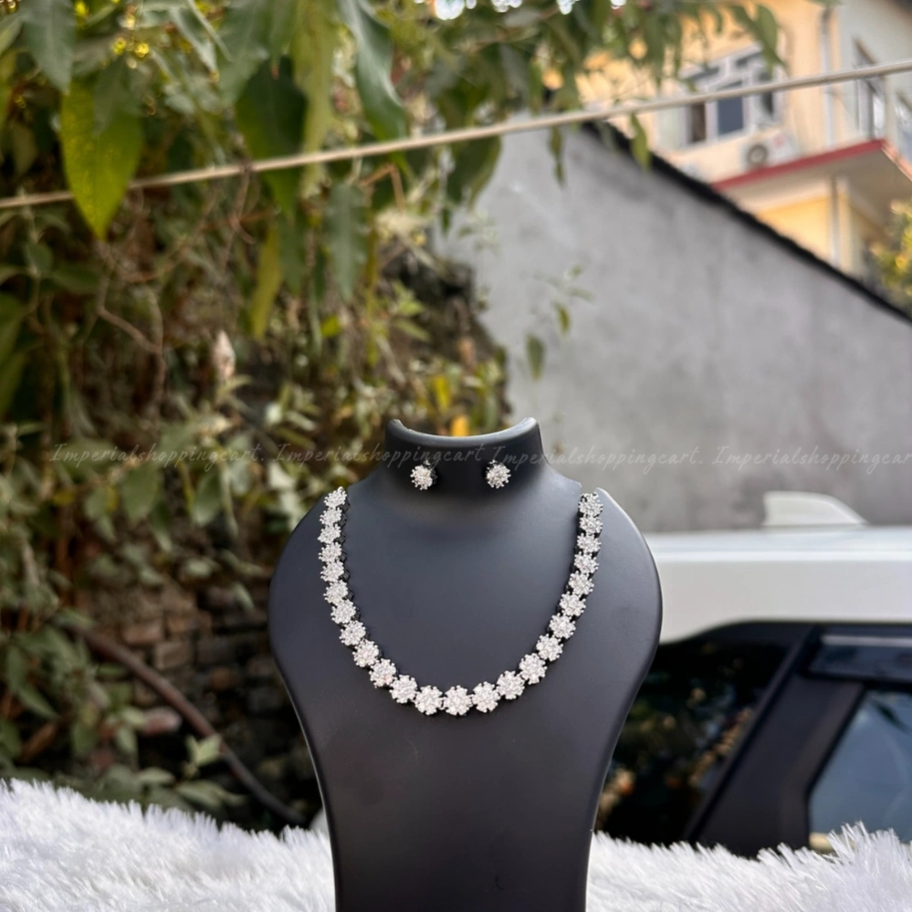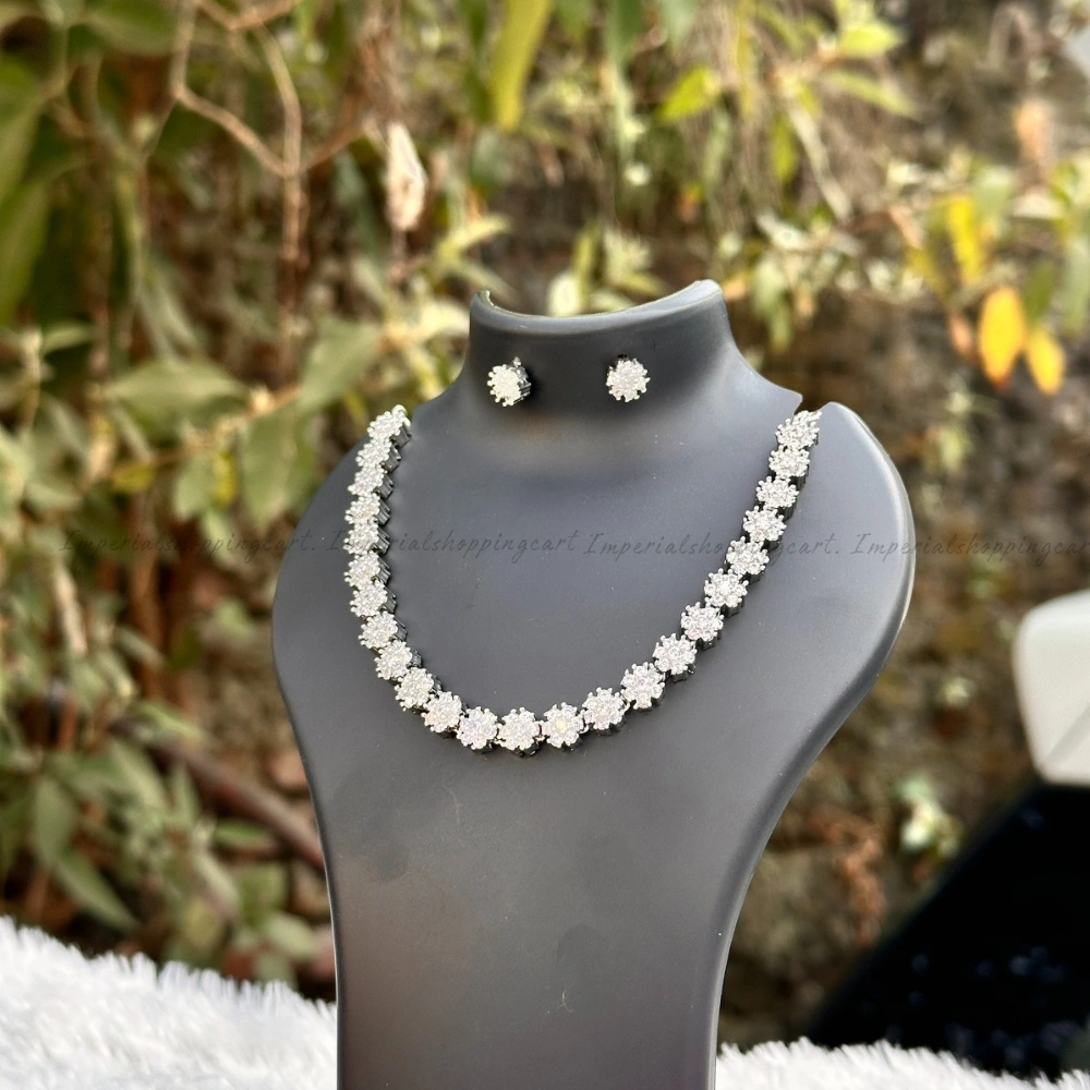 A high-luxury design featuring a continuous strand of diamond-style flowers. Each link is meticulously set with round-cut stones to create a seamless line of brilliance. It is the ultimate "statement" piece for a bride.