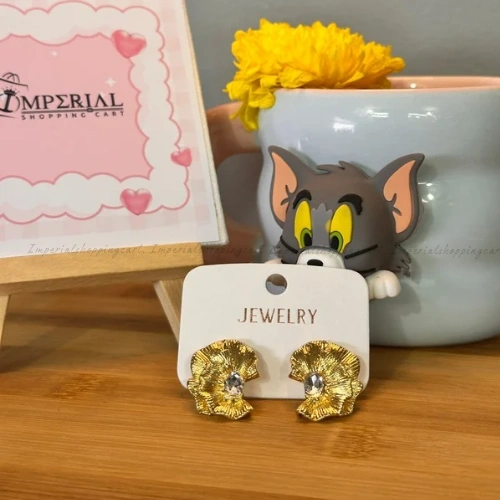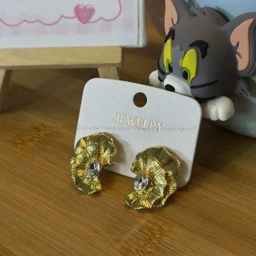 Textured gold earrings inspired by ginkgo leaves, accented with a central round-cut crystal. The fan-like ridges catch the light beautifully for a radiant look.