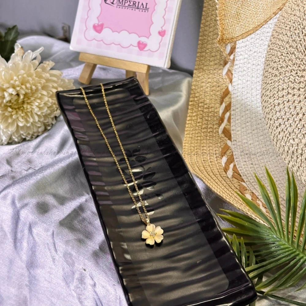 Bring sunshine to your wardrobe with this bold floral necklace. Featuring wide, smooth petals with a soft yellow hue and a cluster of crystals at the center, this piece is a bright and cheerful statement maker.