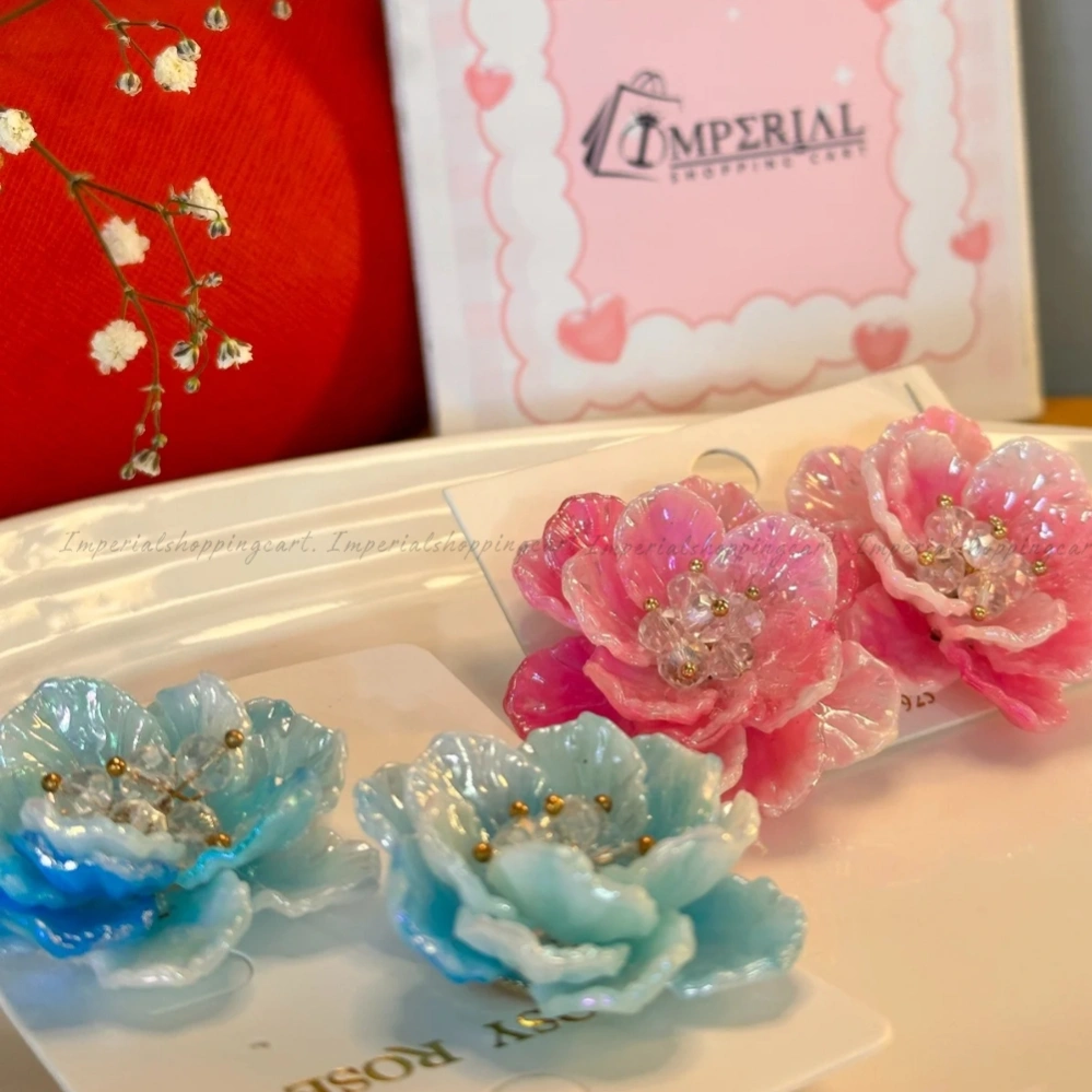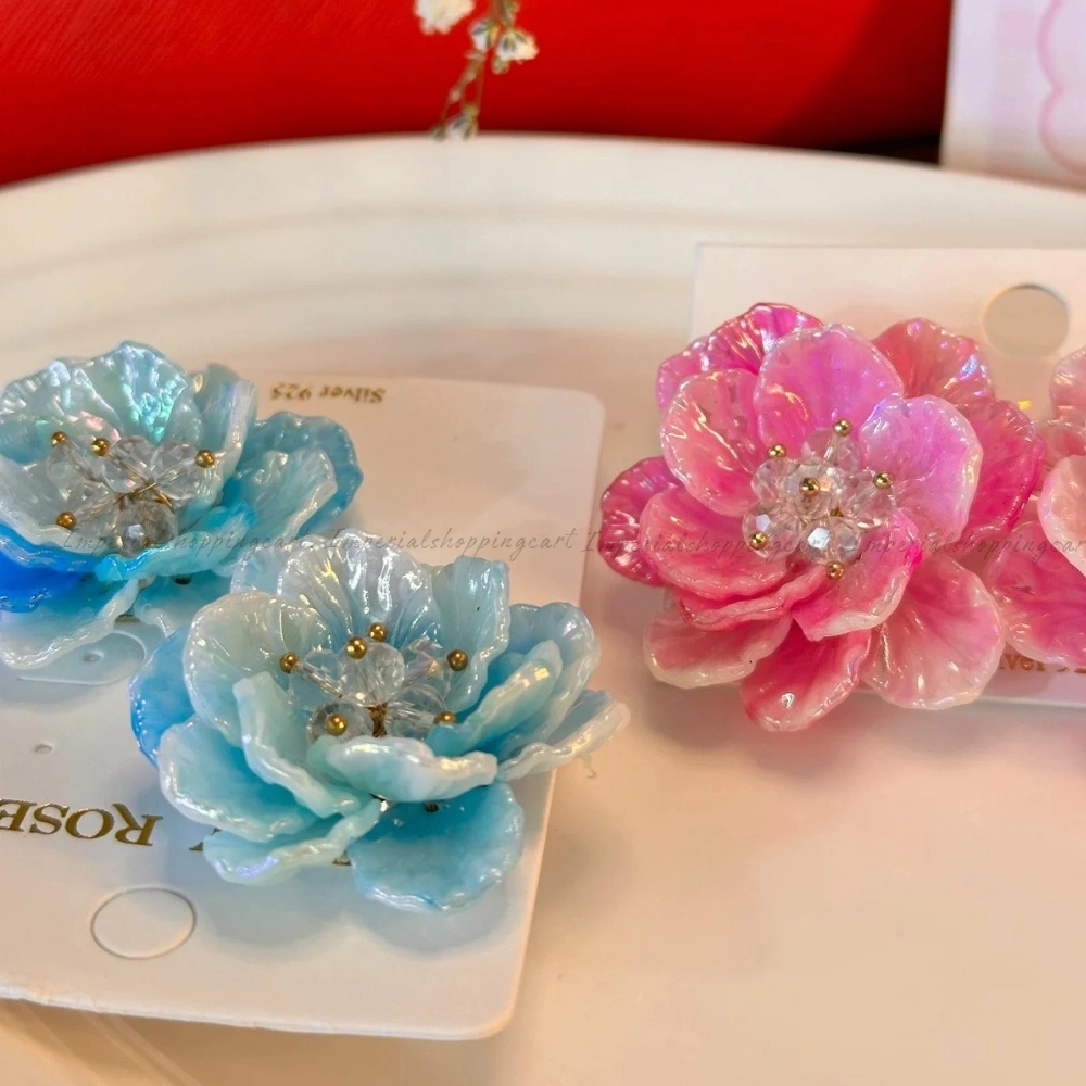 Bold, statement-sized floral studs with a holographic finish. These hand-sculpted flowers feature a cluster of crystal stamens for a high-fashion look.