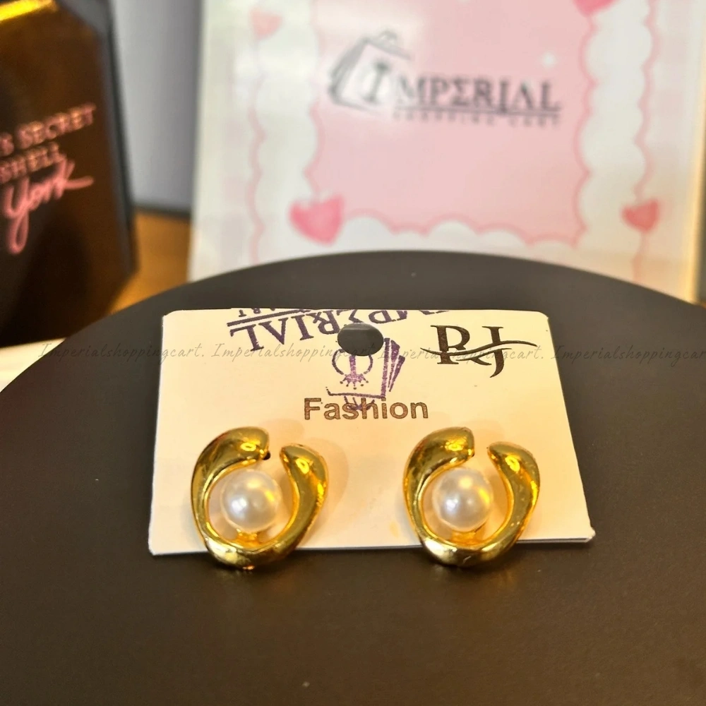 These earrings feature a polished gold "C" curve that cradles a single, floating white pearl. It is a sophisticated, artistic design that balances modern minimalism with timeless elegance.
