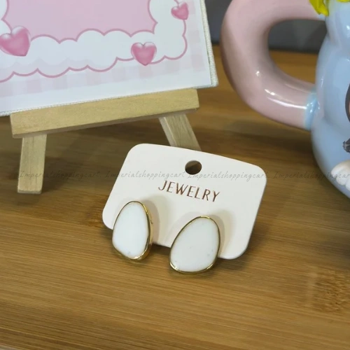 Chic, organic-shaped white enamel earrings with a delicate gold trim. Their smooth, stone-like texture offers a clean and contemporary look for daily wear.