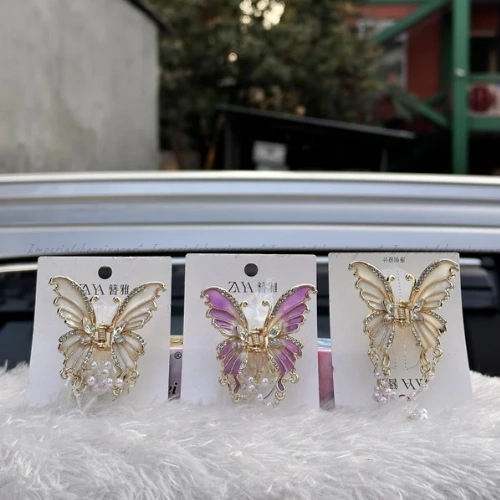 These medium-sized butterfly clips are encrusted with premium rhinestones for maximum sparkle. The dangling pearl accents add a luxurious feel, perfect for pinning back half-up styles or accenting a formal bun.