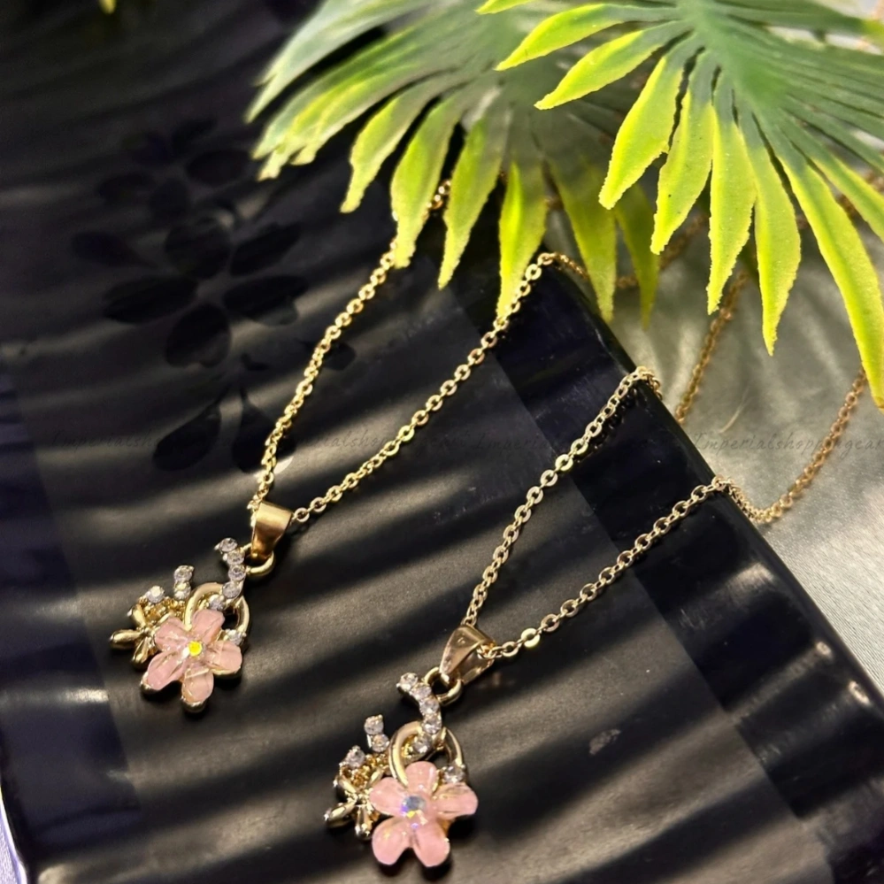 Delicate and feminine, this pendant features a soft pink enamel flower accented by a swirling vine of sparkling micro-crystals. This piece captures the essence of a garden in bloom, making it a romantic gift for someone special.
