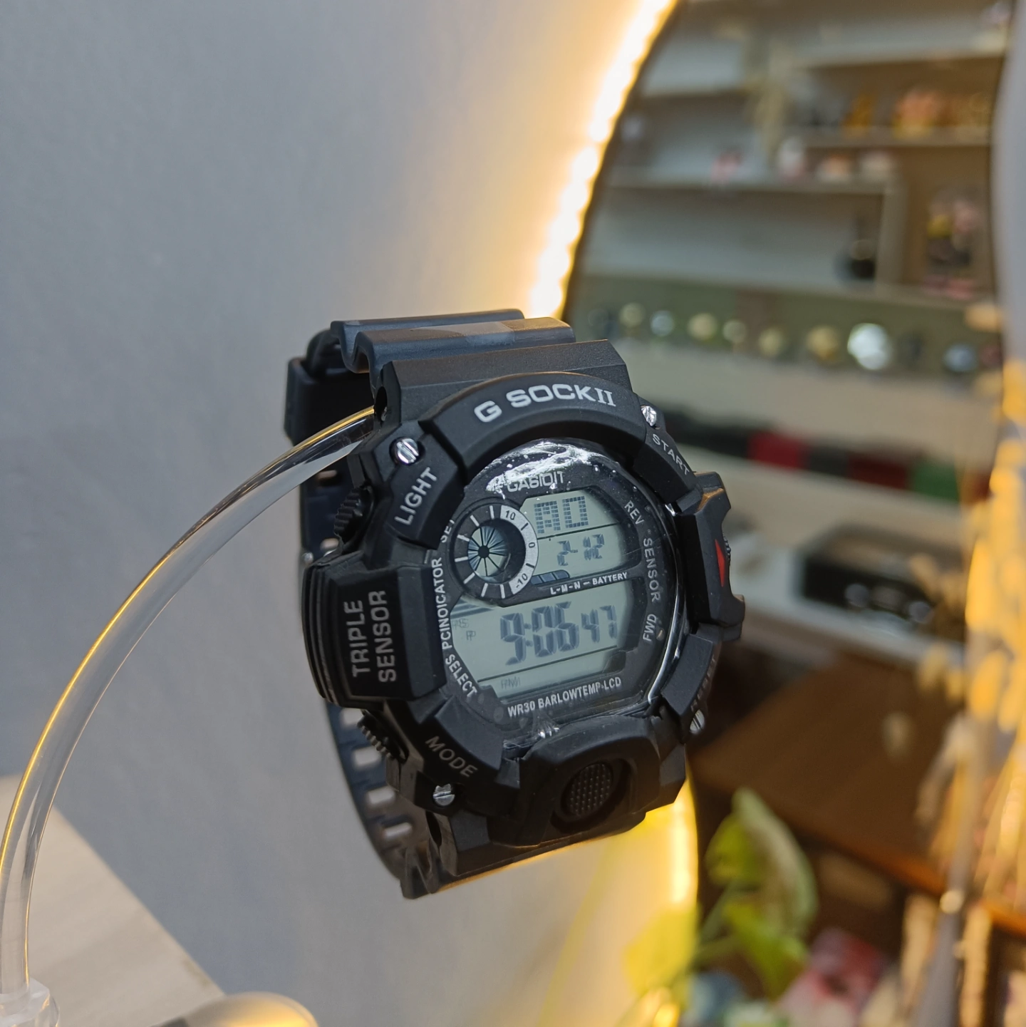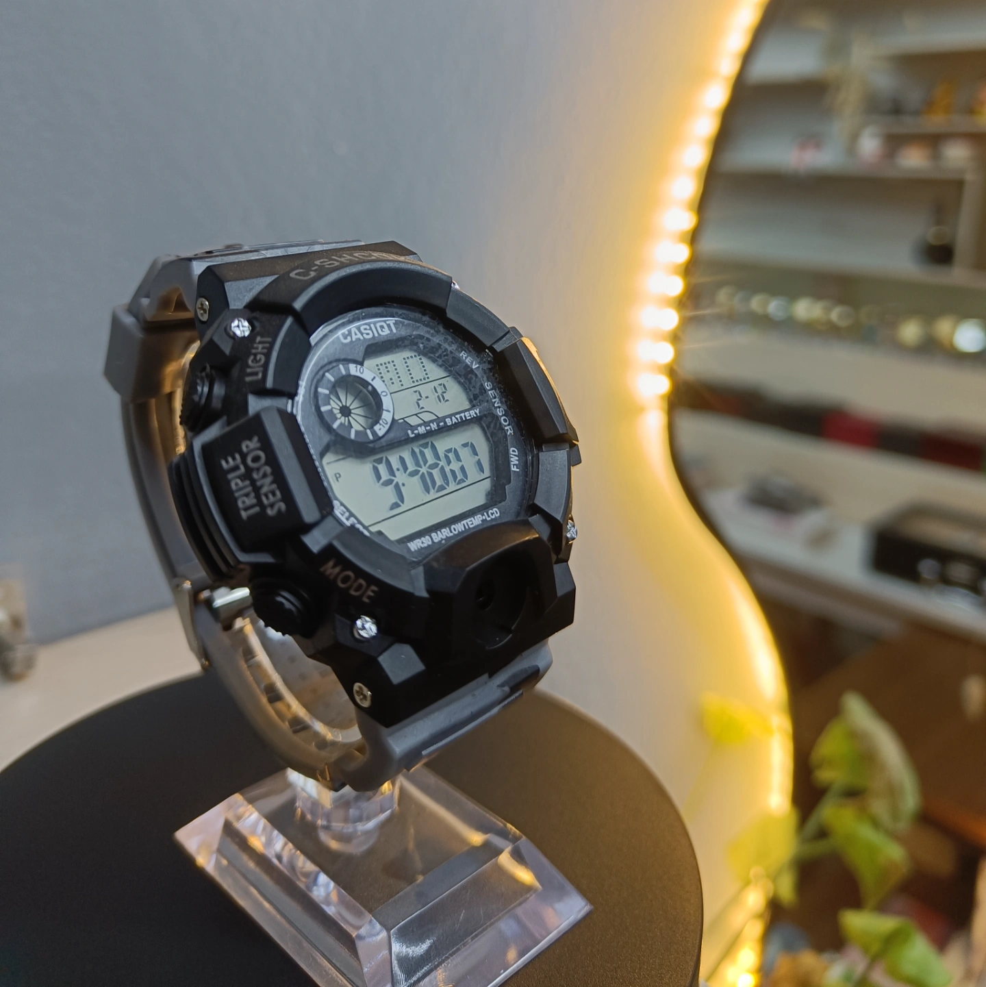 Functionality: Includes multiple indicators such as a "Triple Sensor" and function labels like LIGHT, START, RESET, and MODE, indicating its multi-functional capabilities (Barometer/Low Temp/Compass/etc.).