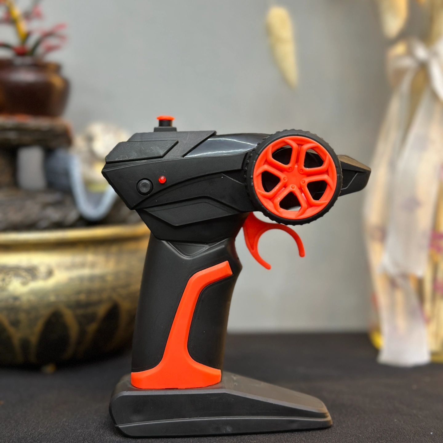 Key Features: It is equipped with oversized, deep-tread rubber tires for climbing and visible high-travel suspension springs. The pistol-grip remote control indicates this is a fully functional RC vehicle intended for traversing rough indoor or outdoor terrain.