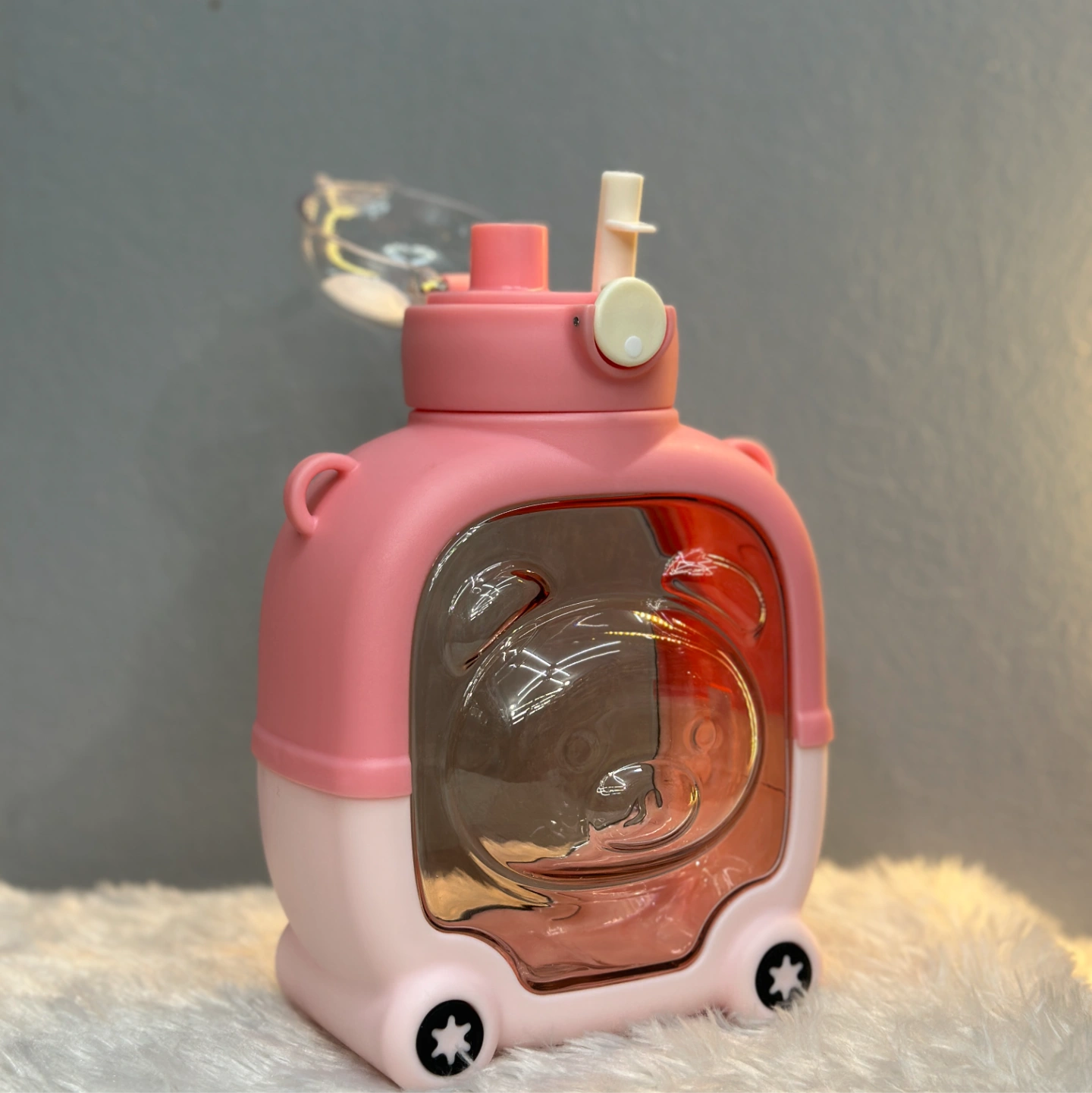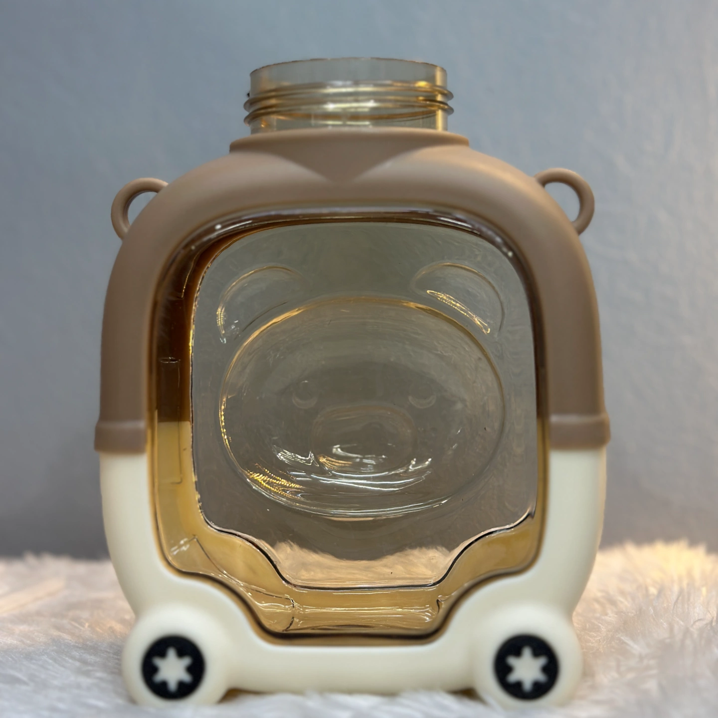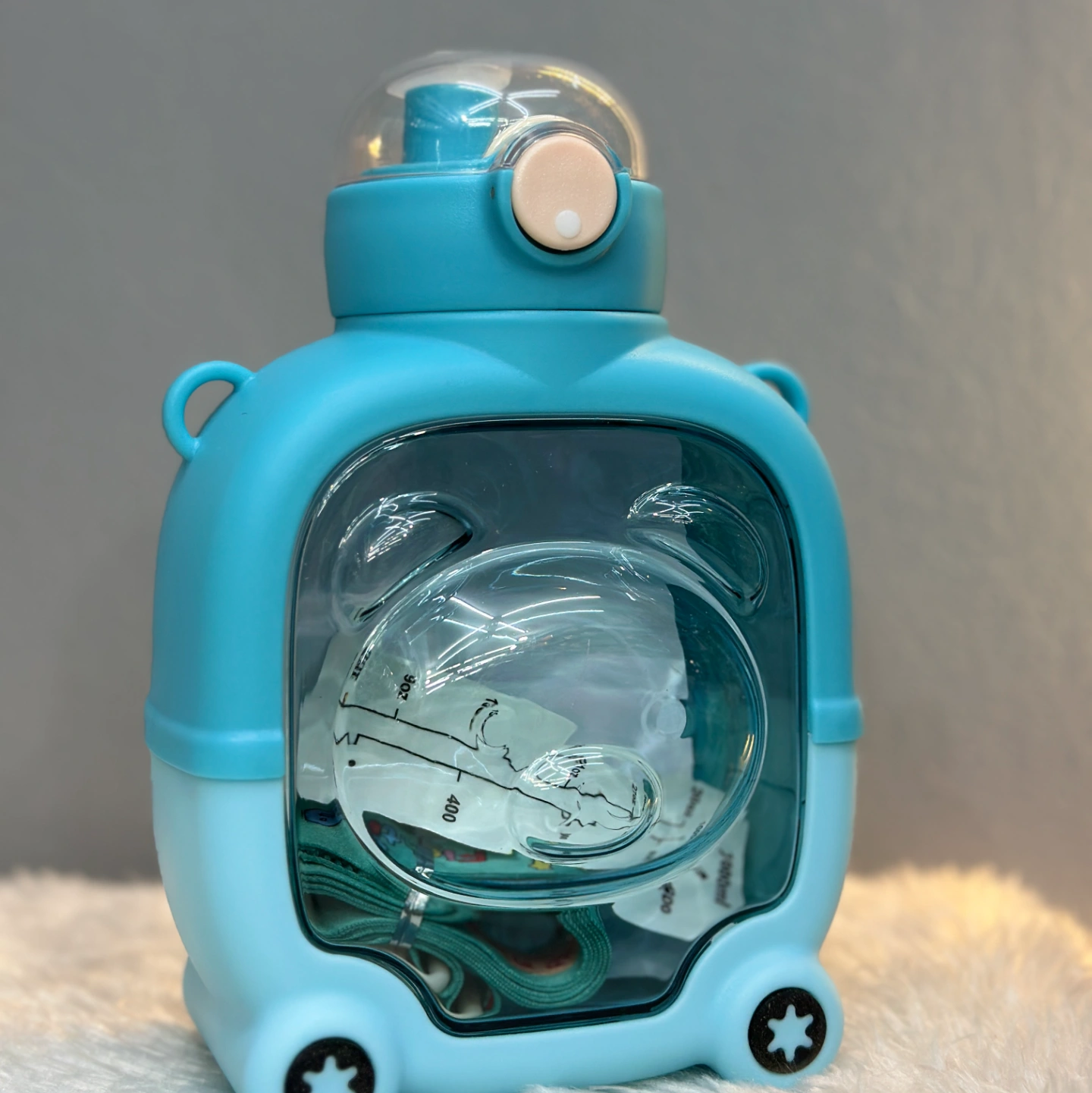 Description: A creative and cute water bottle shaped like a little bus. The transparent middle allows you to see your drink, while the "wheels" and bear-ear loops make it incredibly portable and kid-friendly.