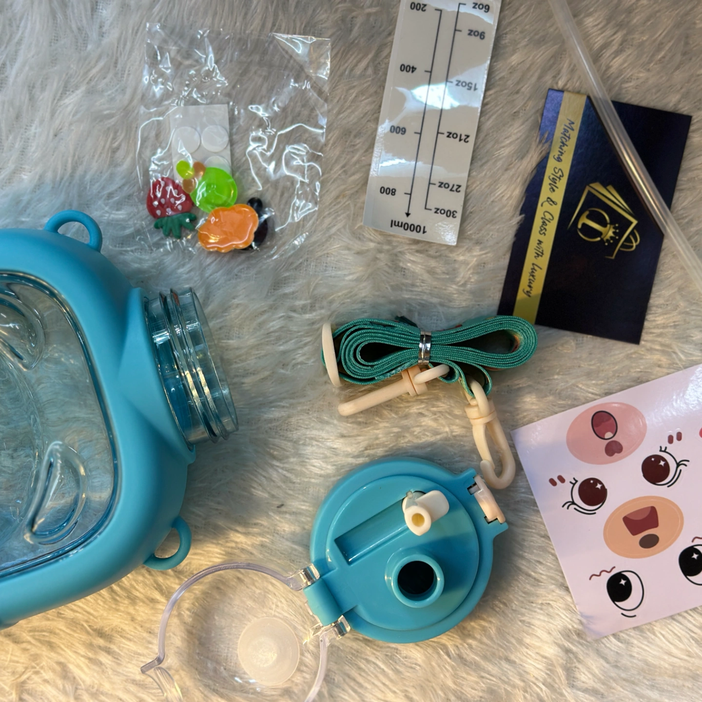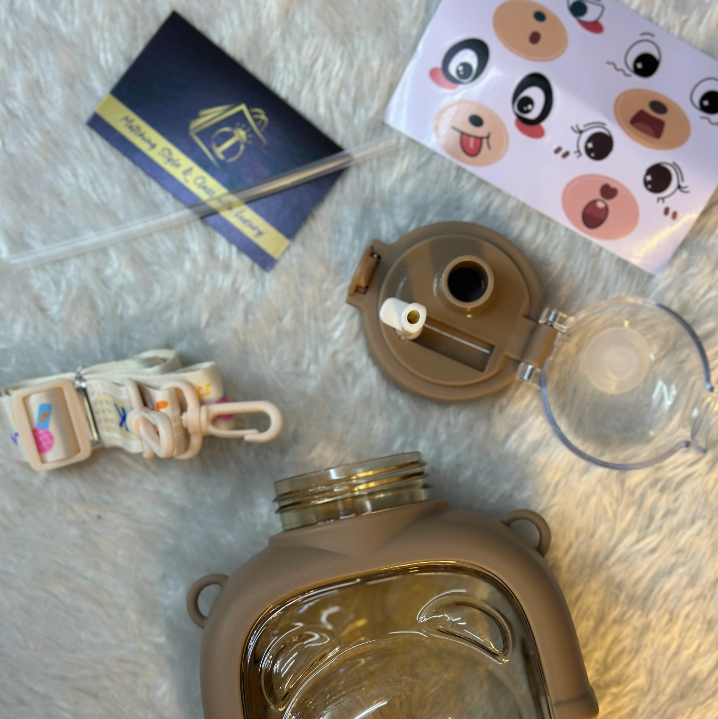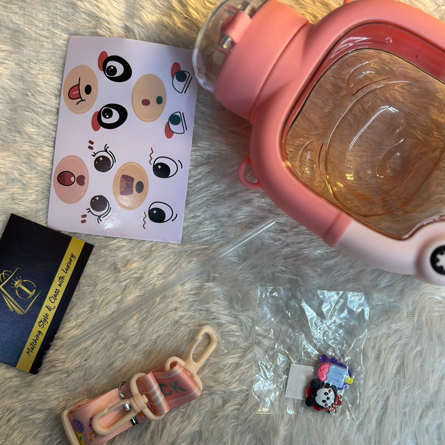 Description: A creative and cute water bottle shaped like a little bus. The transparent middle allows you to see your drink, while the "wheels" and bear-ear loops make it incredibly portable and kid-friendly.