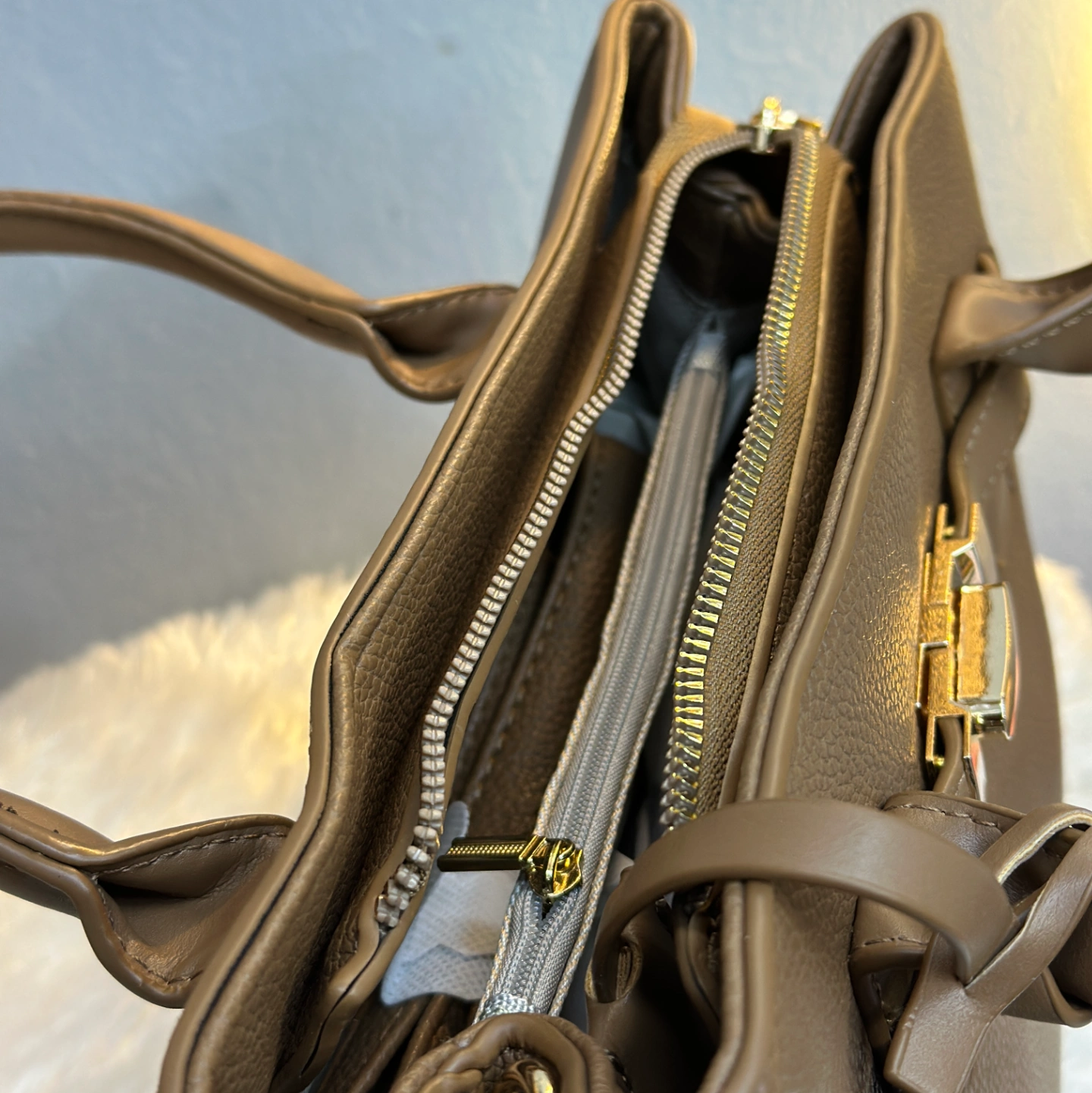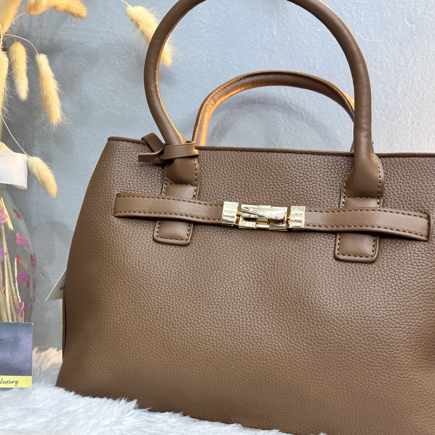 This versatile brown satchel offers a timeless aesthetic. Its structured shape and neutral earth tone make it an easy match for almost any outfit in your wardrobe.
