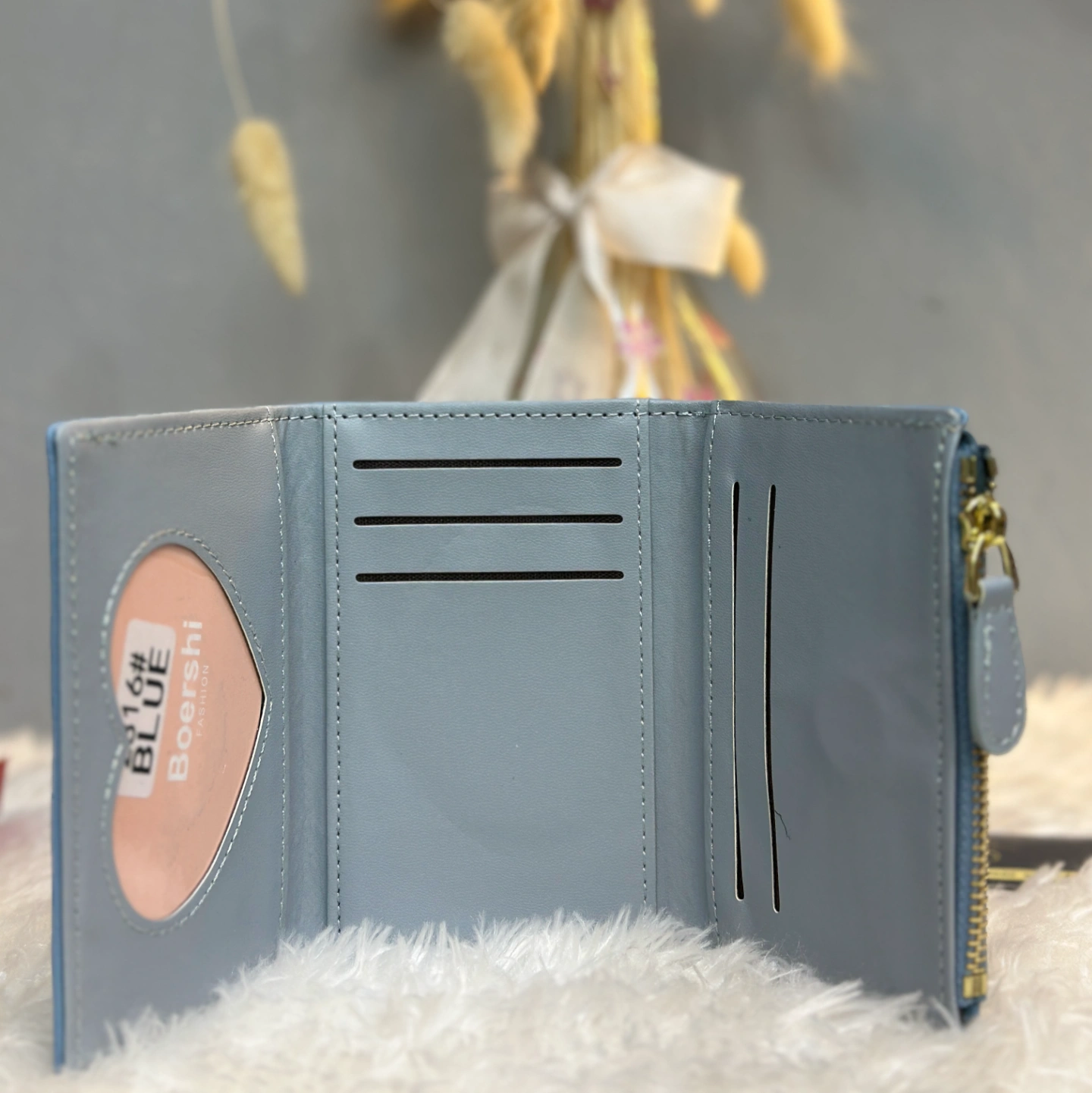 Security: Full-zip coin pocket on the side with a reinforced leather pull.