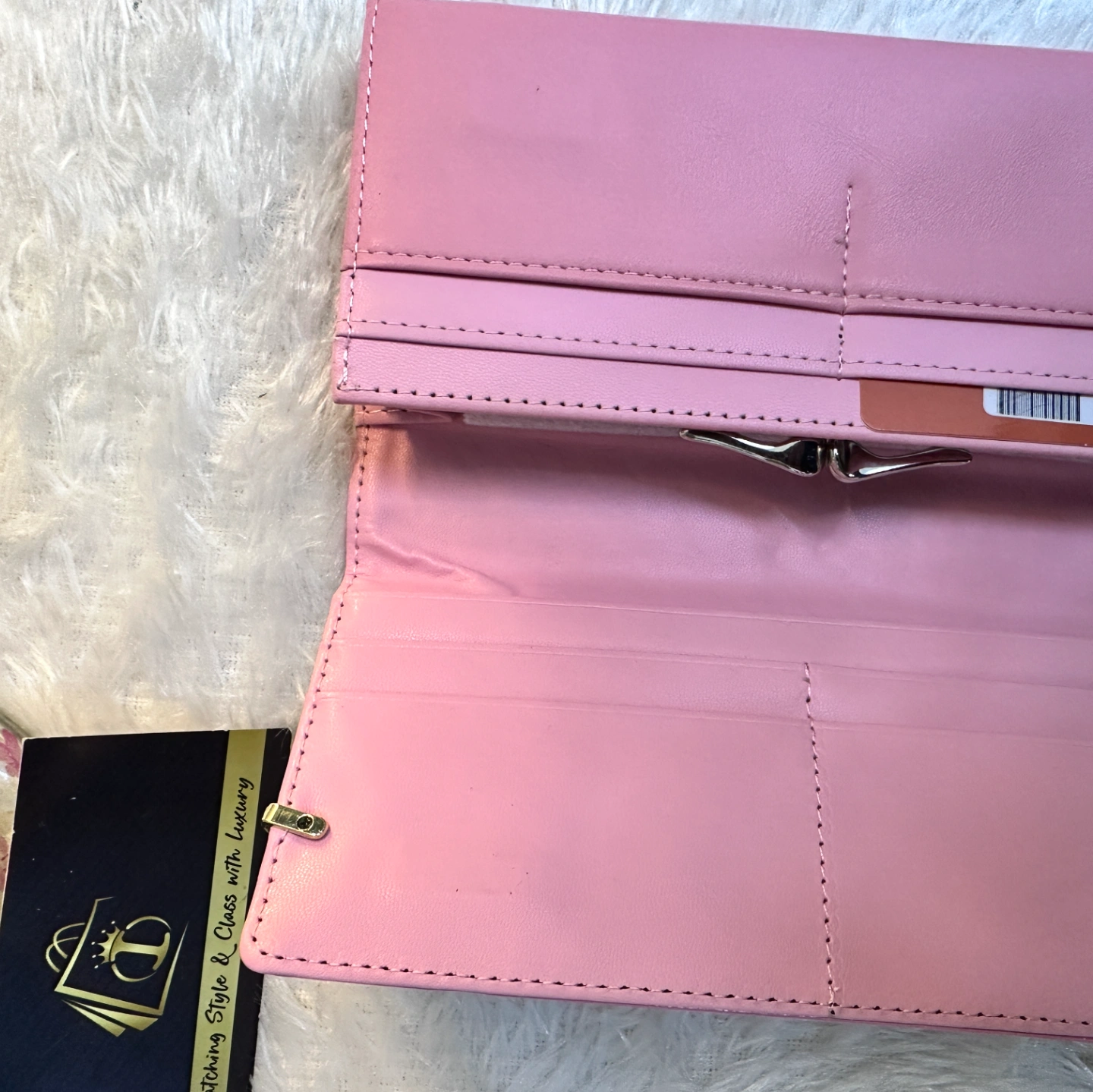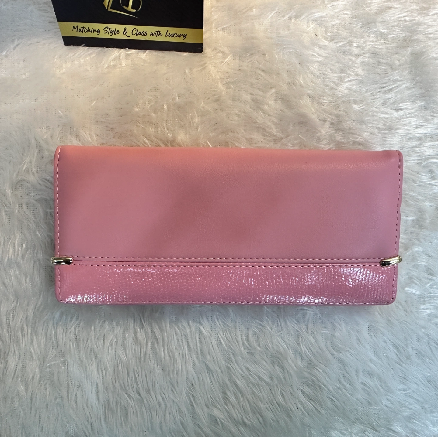 Key Feature: Trendy interlocking monogram pattern with a sleek snap-button tab.