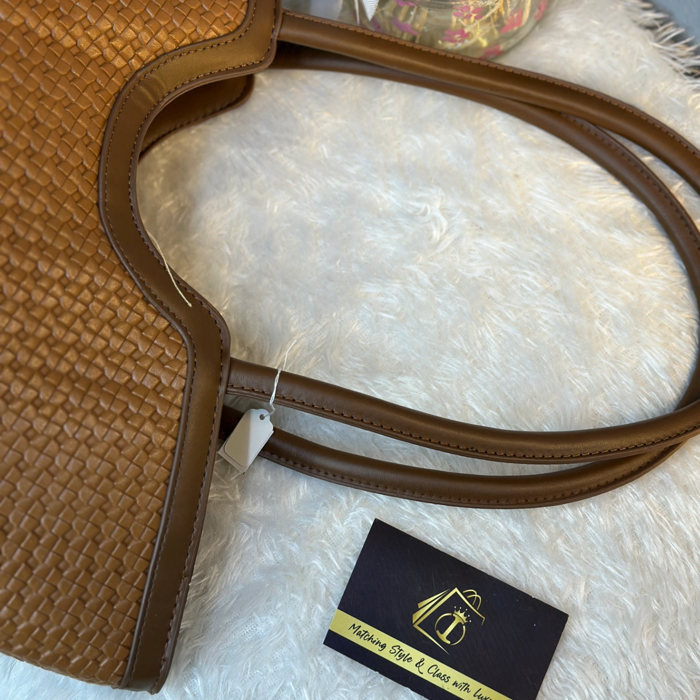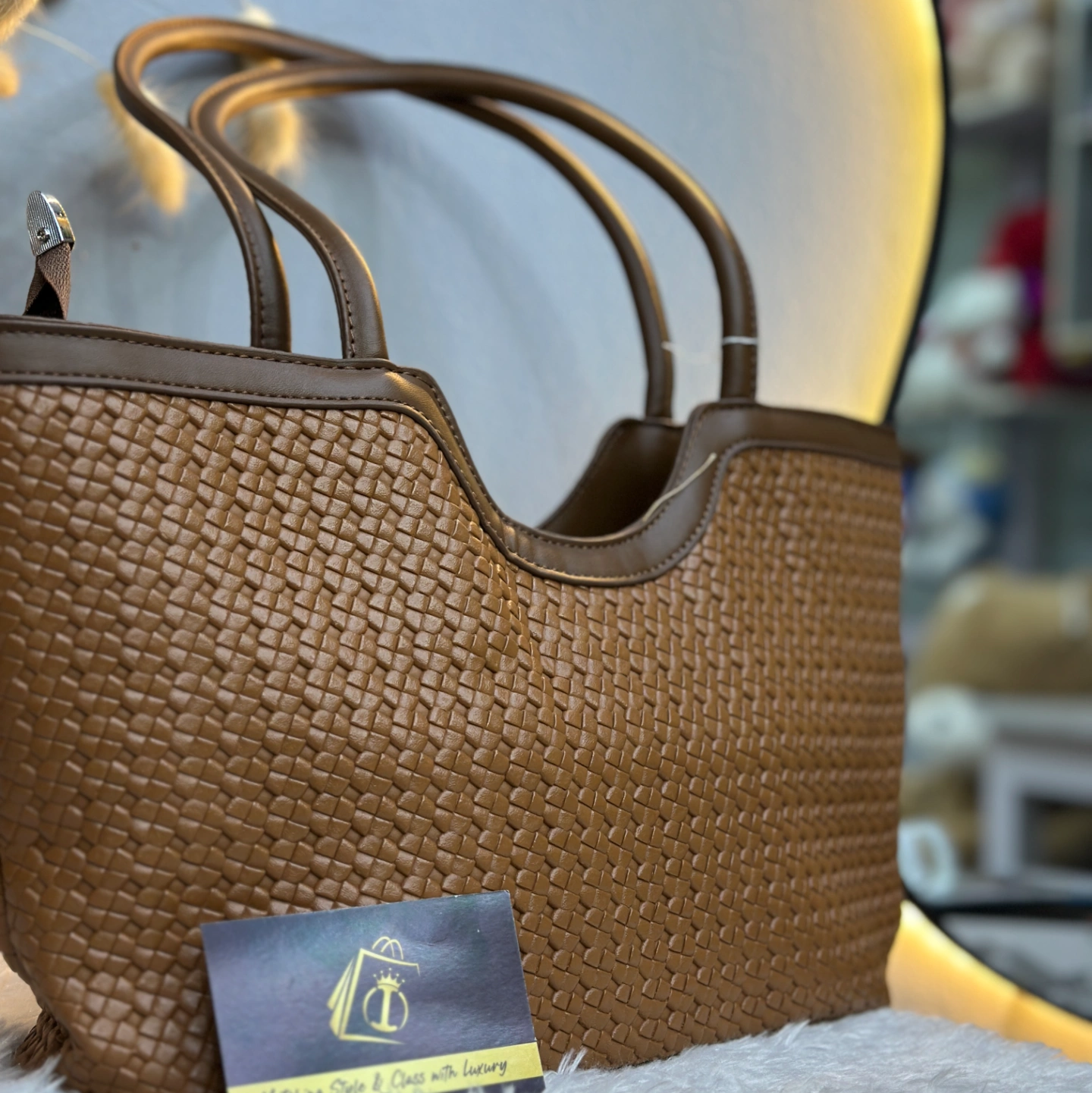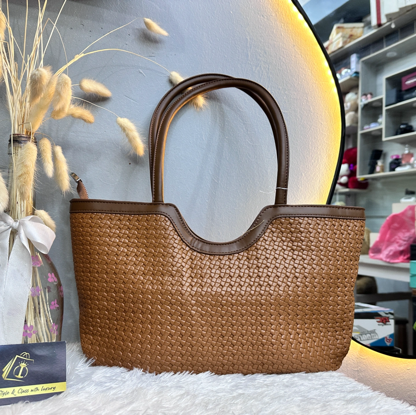 A spacious tote featuring a beautiful interlaced texture. The deep U-shaped top opening and large capacity make it ideal for shopping trips or a busy day running errands.