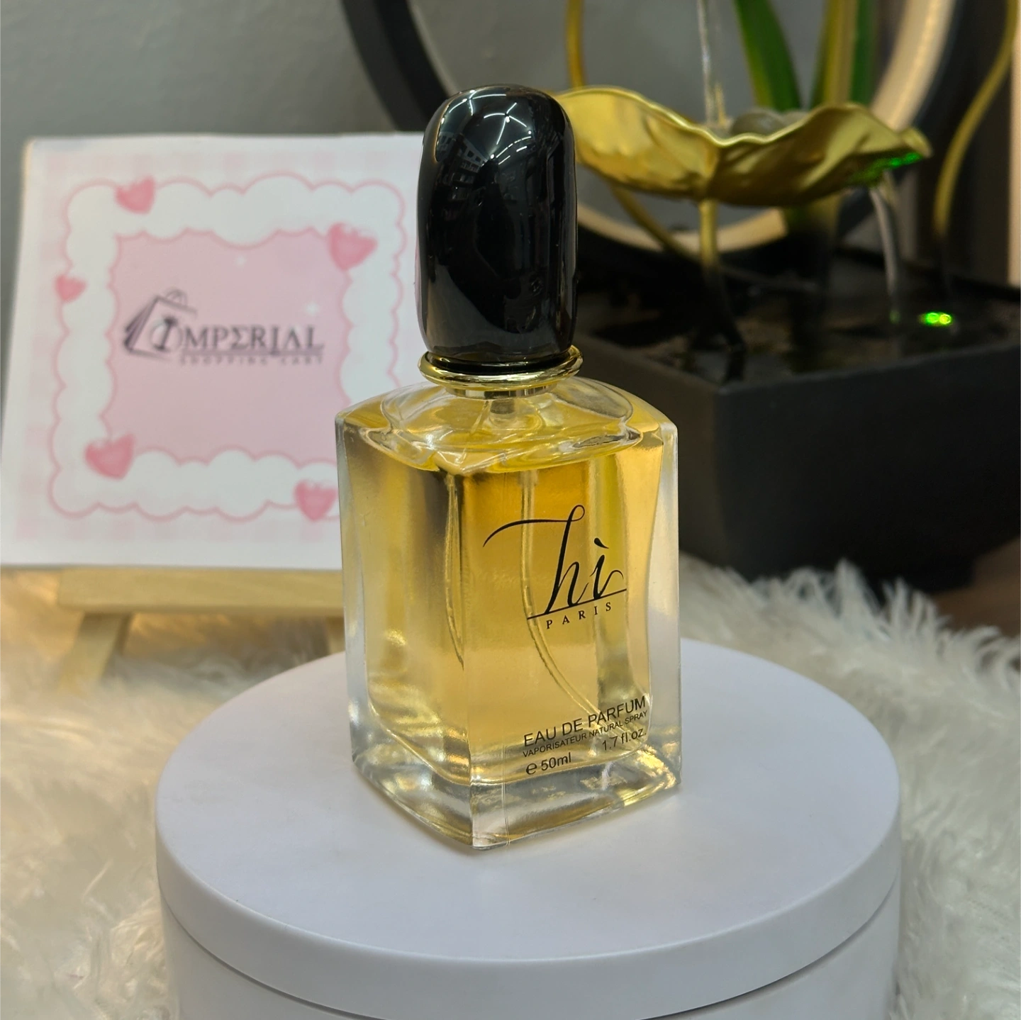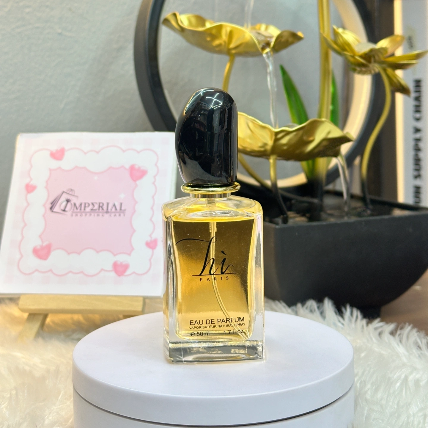 The bottle shape and the distinct, organic "stone" cap are iconic markers of the Armani Sì line.