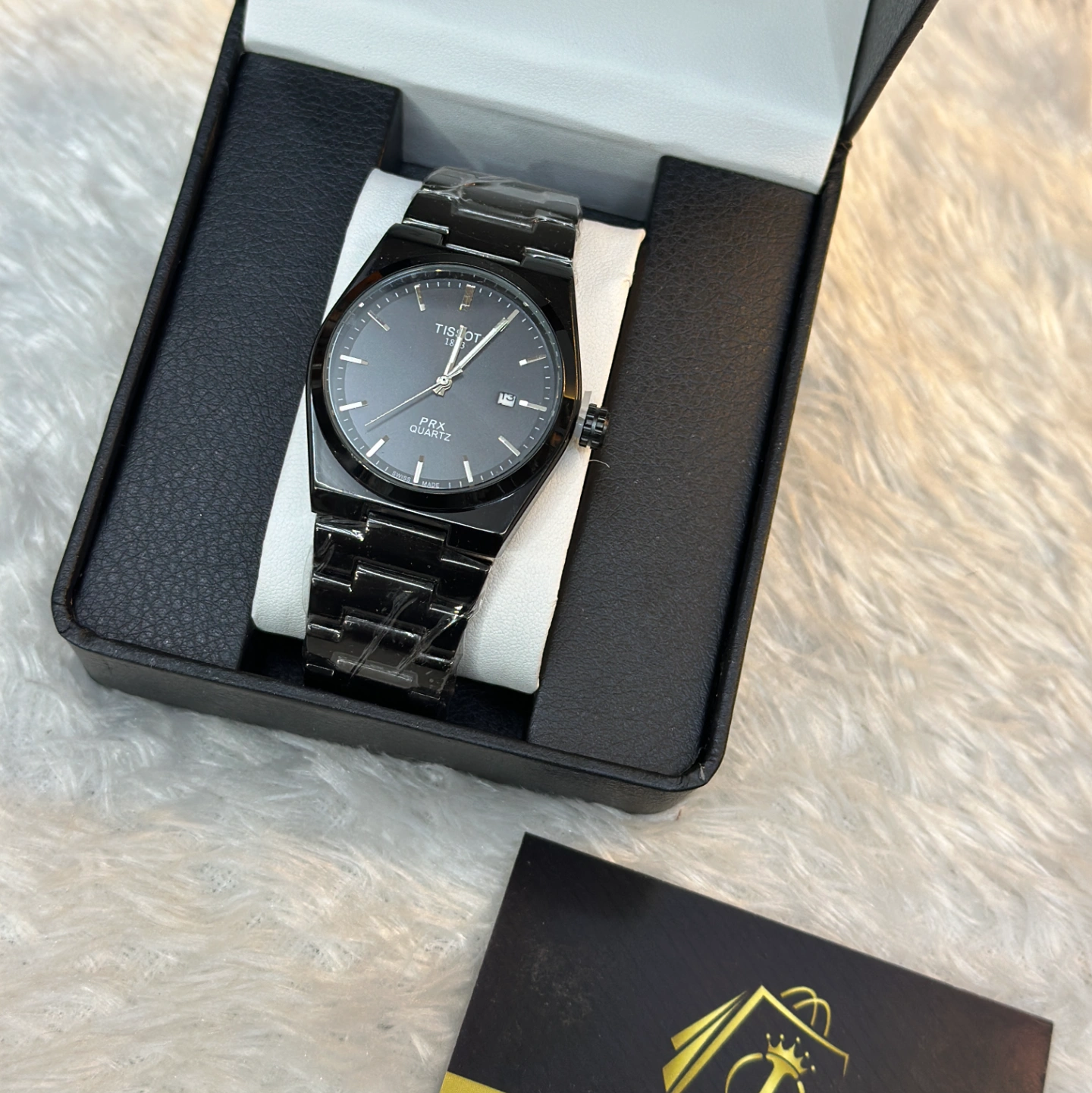 A sleek, "blackout" version of the integrated bracelet design. The matte black finish on the case, band, and dial offers a modern, understated look that works perfectly for formal or casual wear.