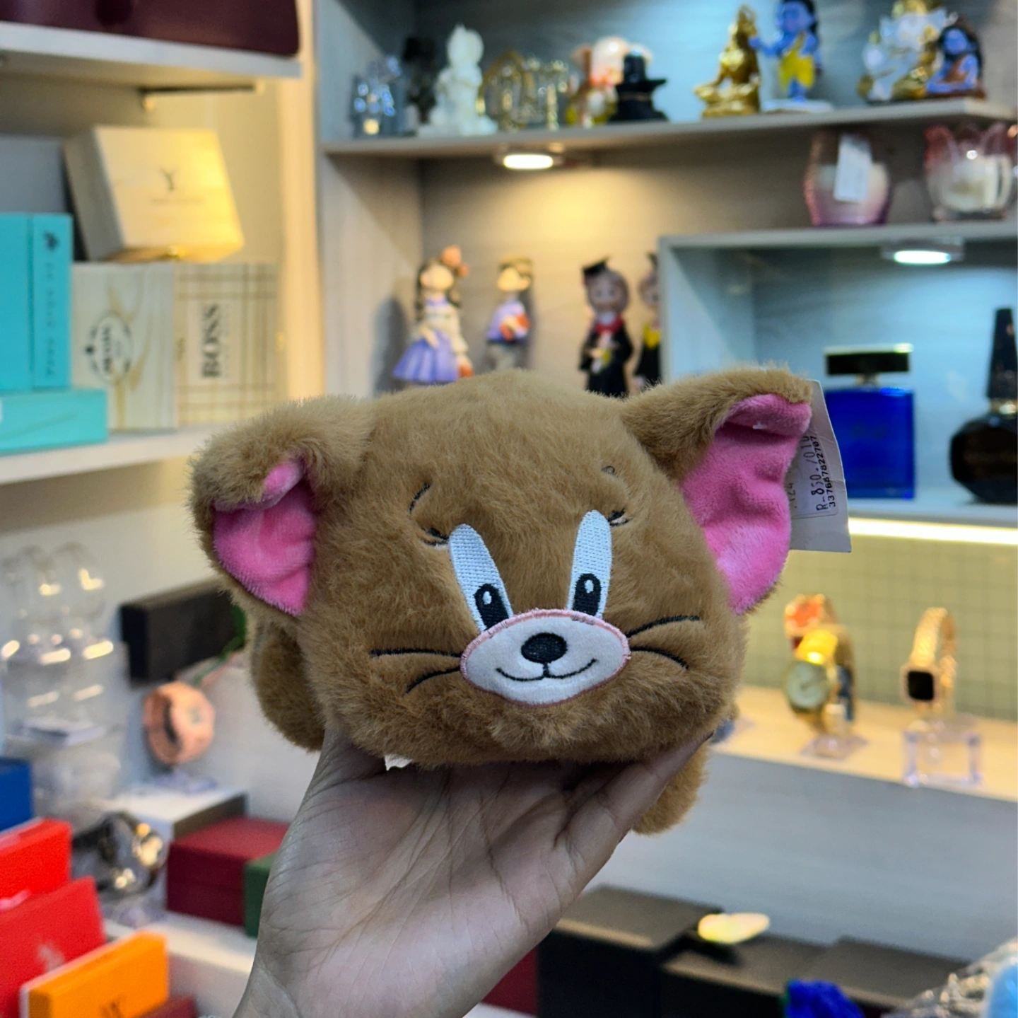 Jerry: A warm brown plush with wide white-and-black eyes and a cheeky smile, matching Tom’s design style.