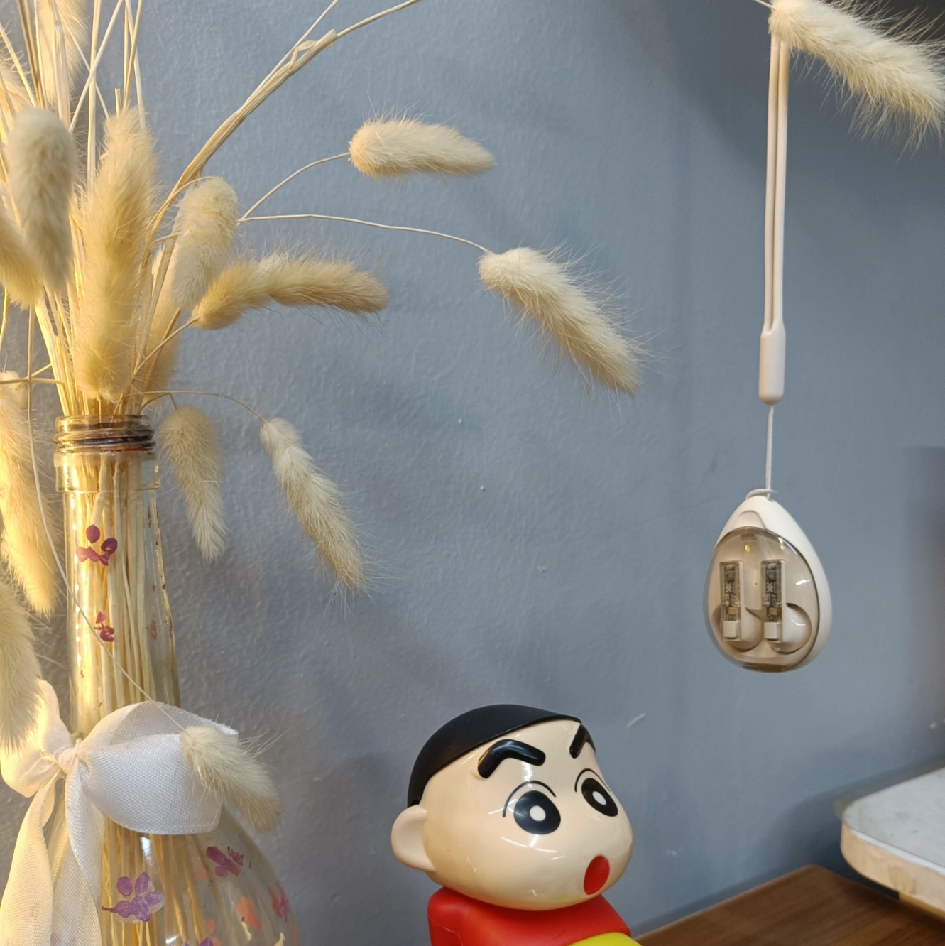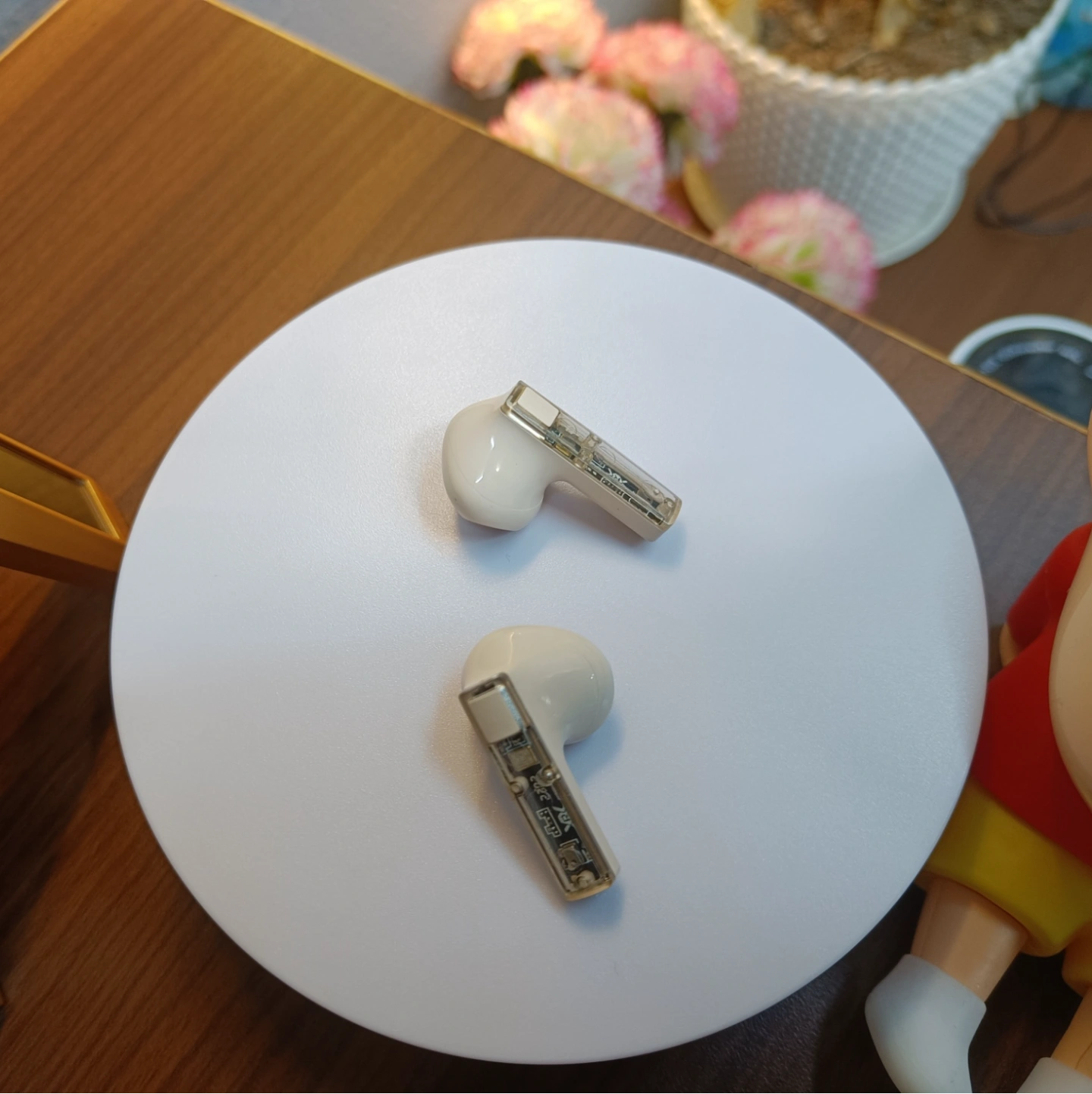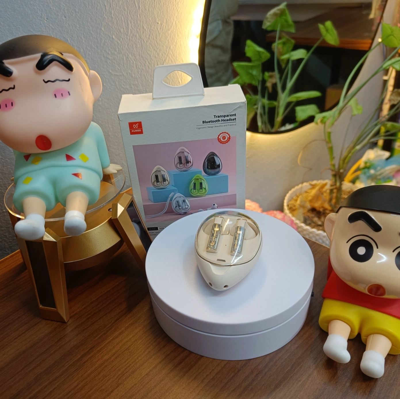 The perfect blend of whimsy and wireless tech! Meet the Aura Pods, the transparent headset that brings fun to your daily audio. Even Shinnosuke approves