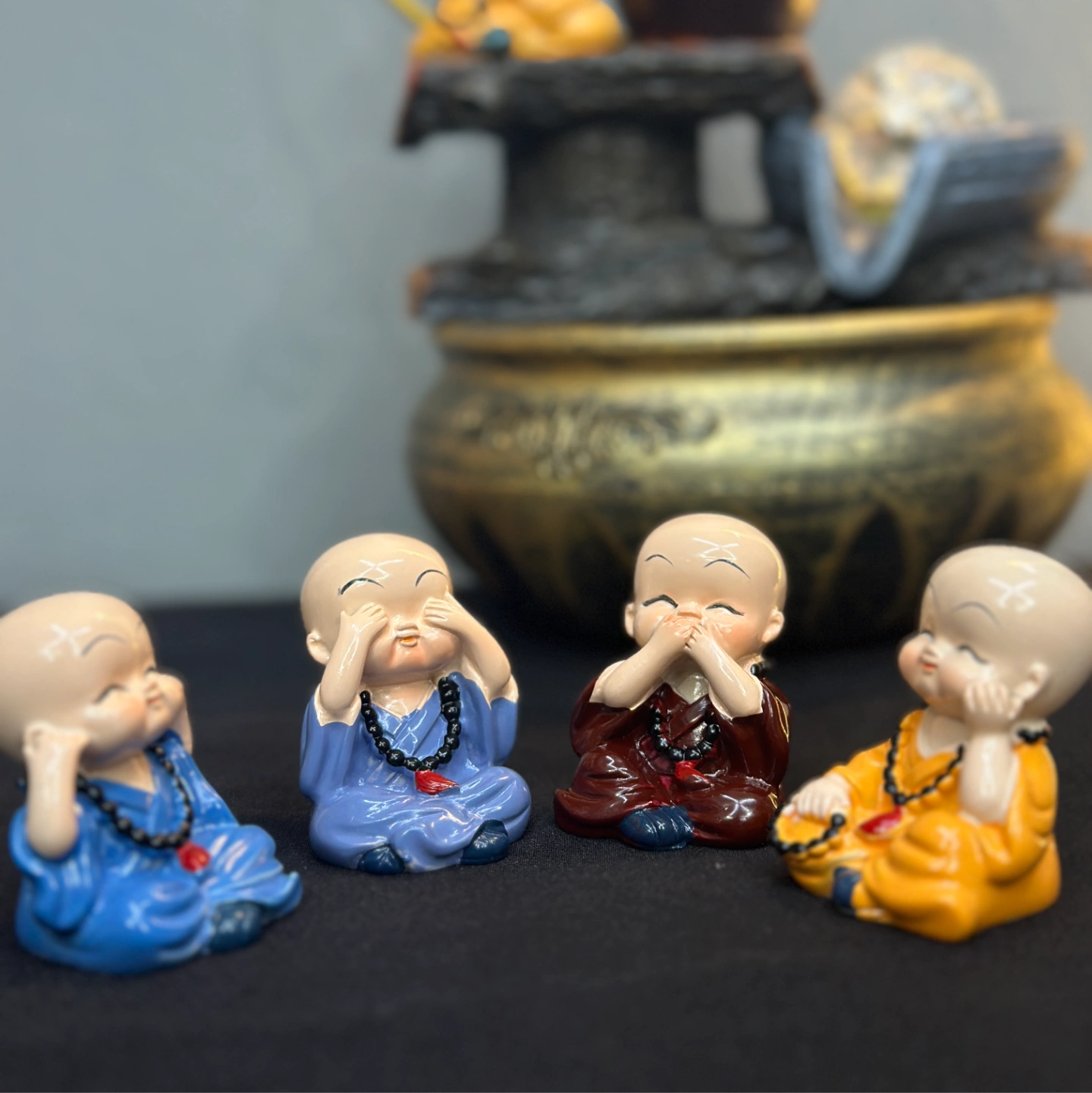 Inspired by the traditional "See No Evil, Hear No Evil, Speak No Evil" philosophy, this set includes four adorable young monks in colorful robes. They serve as a peaceful reminder of mindfulness and joy.